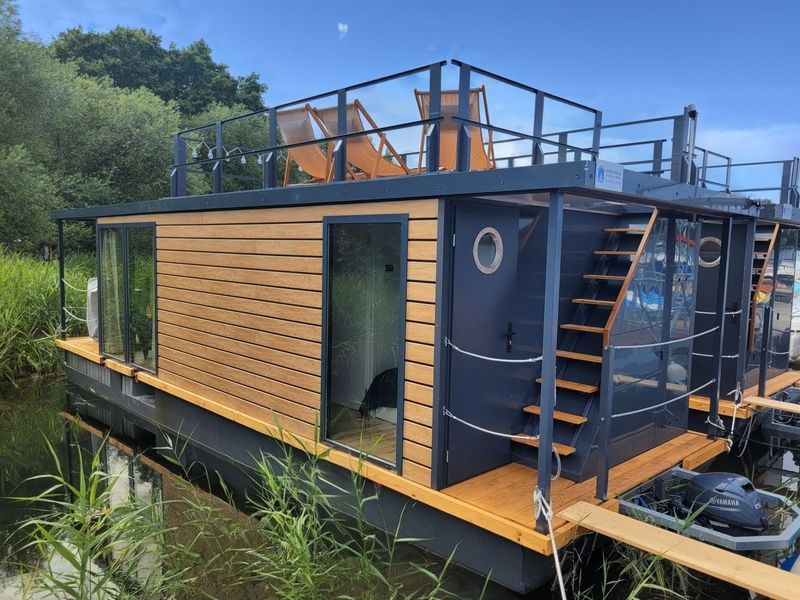 Erleben Sie am Senftenberger See eine einzigartige Art des Urlaubs! Unsere Hausboote liegen in der idyllischen Marina Niemtsch und jeder Gast genießt sein eigenes Hausboot-Loft. Stellen Sie sich vor, Sie liegen bequem in Ihrem Bett und blicken direkt auf das sanfte Wasser des Senftenberger Sees. Vergessen Sie den üblichen Strandtrubel und entspannen Sie stattdessen auf Ihrer eigenen Dachterrasse, wo Sie die Sonne genießen können.